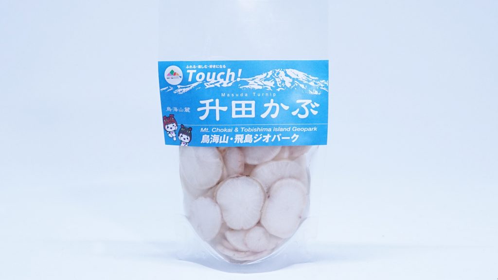 鳥海山の水の恵みを受けて栽培されており、ジオの恵みを活かした、地域ならではの食の魅力を発信する鳥海山・飛島ジオパーク認定商品「ぺろっと 鳥海山・飛島 ~たのしくおいしいものがたり~」に升田かぶの甘酢漬けが認定されています。
